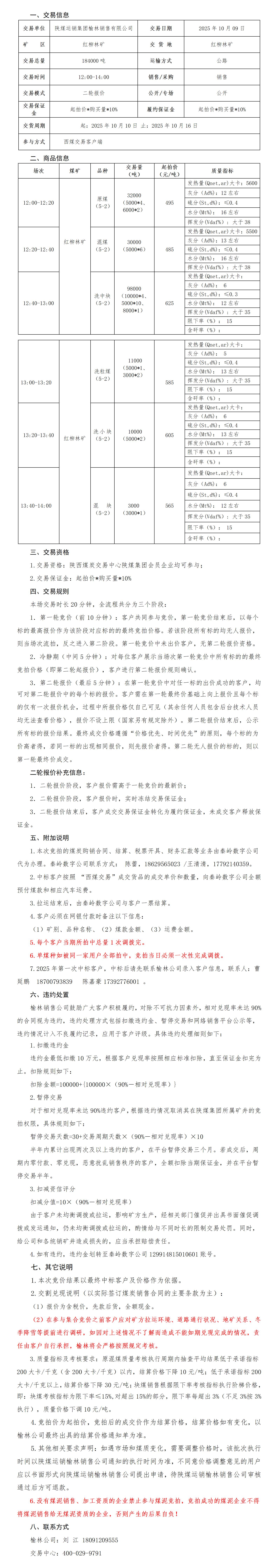 10月9日陕煤运销集团榆林销售有限公司交易公告